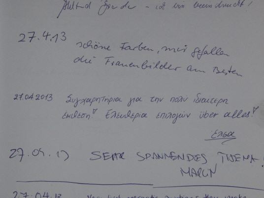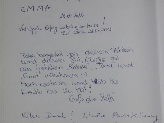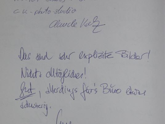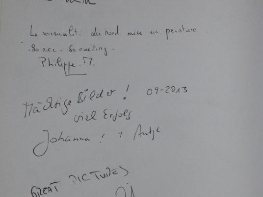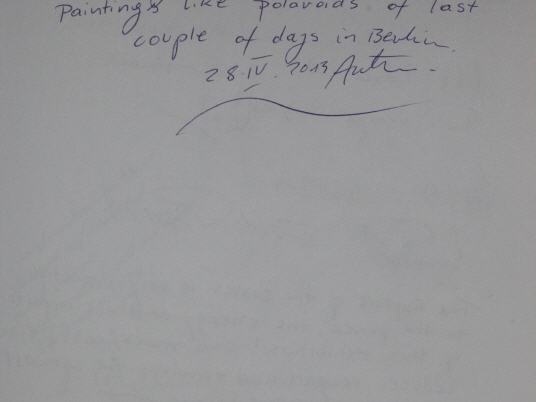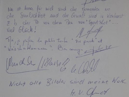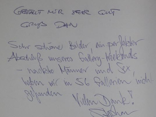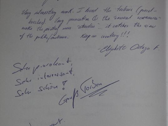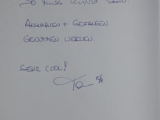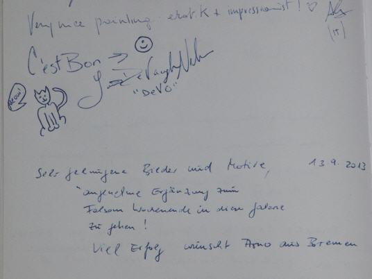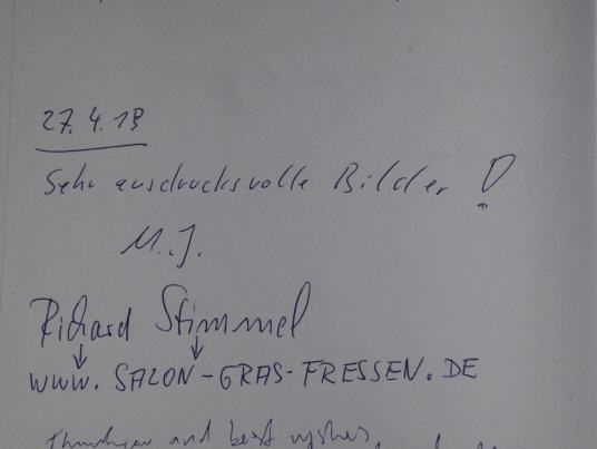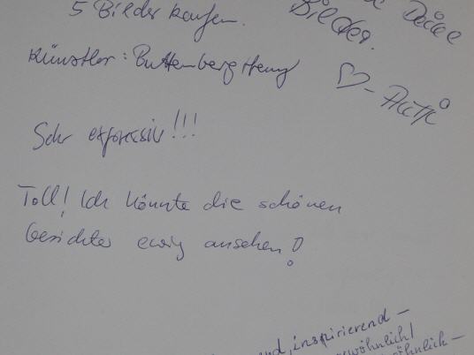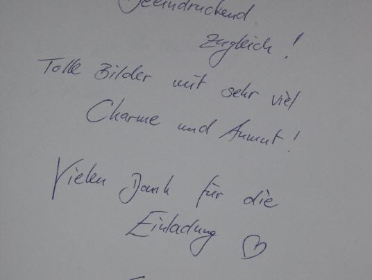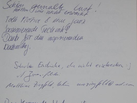 Comment: hi, really a stylish site. Unfortunately, we do not see so often. Unfortunately I can not come to your Vernissage (unfortunately I live too far einbisschen). greeting from Zurich, marcin