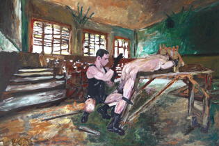 60 cm high x 90 cm acrylic on canvas - frame - 4 cm spruce